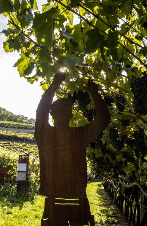 La maggior parte dei nostri vigneti si trovano attorno alla cantina. “Zeit in Waldgries” è un percorso aperto al pubblico che li attraversa. Inizia proprio accanto all'ingresso dell'antico edificio. Christian Plattner ha curato personalmente insieme ad un amico artista la progettazione delle installazioni: è molto probabile incontrarlo in vigna mentre lavora.
